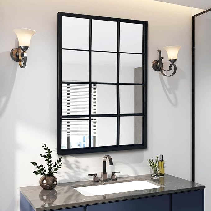 This 24″ x 36″ black windowpane mirror combines minimalist design with artistic elegance, featuring a matte black metal frame that is moisture-proof and rust-resistant. Its 4mm HD glass delivers clear, true-to-life reflections.